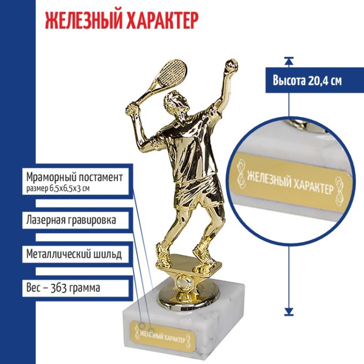 Статуэтка Теннисист "Железный характер" на мраморном постаменте (20,4 см) - описание товара