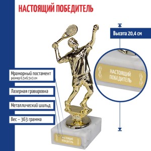 Статуэтка Теннисист "Настоящий победитель" на мраморном постаменте (20,4 см) - описание товара