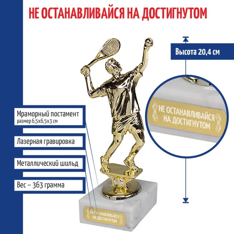 Статуэтка Теннисист "Не останавливайся на достигнутом" на мраморном постаменте (20,4 см) - описание товара