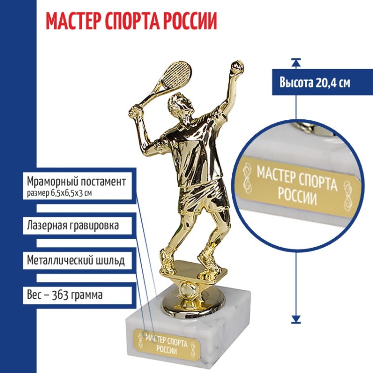 Статуэтка Теннисист "Мастер спорта России" на мраморном постаменте (20,4 см) - описание товара