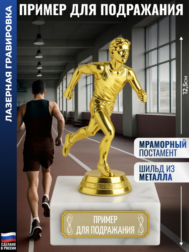 Фигурка будет роскошным украшением любого интерьера и станет достойной наградой ребенку за спортивные выигрыши, завоевания 1, 2 или 3 места, новом рекорде в забеге на 100, 200, 500, 800, 1000, 1500, 5000 метров и больше.