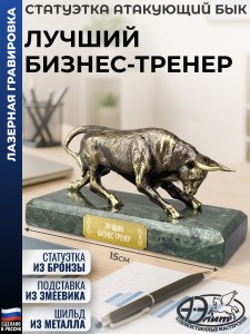 Наградная статуэтка с атакующим быком символизирует силу и решимость, станет центром внимания в любом интерьере и достойным признанием сильной личности.