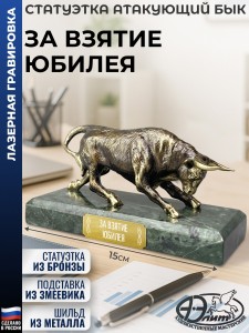 Наградная статуэтка с атакующим быком символизирует силу и решимость, станет центром внимания в любом интерьере и достойным признанием сильной личности.