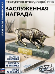 Наградная статуэтка с атакующим быком символизирует силу и решимость, станет центром внимания в любом интерьере и достойным признанием сильной личности.