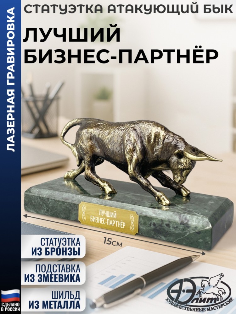 Наградная статуэтка с атакующим быком символизирует силу и решимость, станет центром внимания в любом интерьере и достойным признанием сильной личности.