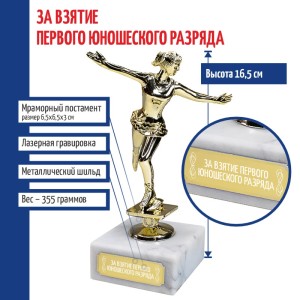 Статуэтка Фигуристка "За взятие первого юношеского разряда" на мраморном постаменте (16,5 см) - описание товара