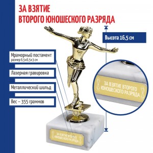 Статуэтка Фигуристка "За взятие второго юношеского разряда" на мраморном постаменте (16,5 см) - описание товара