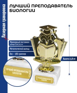 Наградная статуэтка «Учёная сова» - подходит для вручения призов на образовательных и научных мероприятиях, а также для оформления интерьеров кабинетов и библиотек.