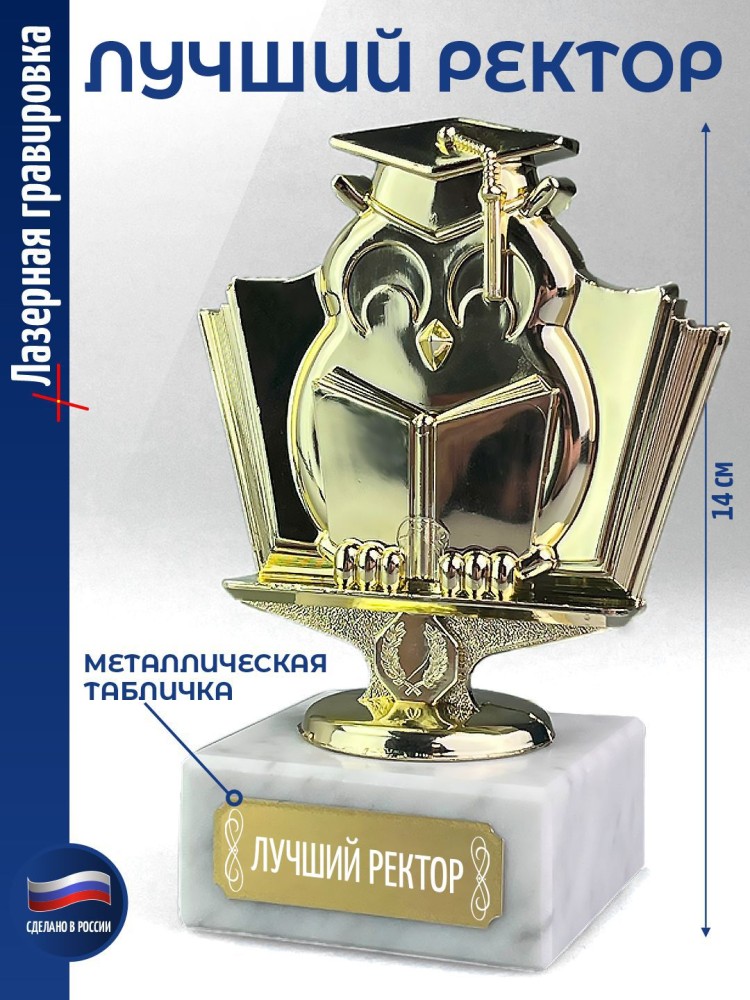 Наградная статуэтка "Учёная сова" подходит для подарка учителям, студентам и всем, кто ценит символику знаний и образования.