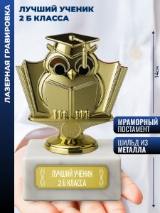 Наградная статуэтка «Учёная сова» - подходит для вручения призов на образовательных и научных мероприятиях, а также для оформления интерьеров кабинетов и библиотек.