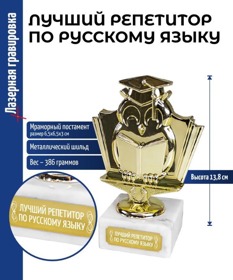 Наградная статуэтка «Учёная сова» - подходит для вручения призов на образовательных и научных мероприятиях, а также для оформления интерьеров кабинетов и библиотек.