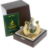 На части изделия нанесена позолота посредством технологии электролиза (гальваническое золотое покрытие). Толщина слоя составляет 5 мкм. Согласно действующему законодательству изделия со слоем позолоты на недрагоценном металле не подлежат опробованию (проба не ставится), а сами изделия не считаются ювелирными. По этой причине никаких сертификатов или иных сопроводительных документов для продажи или перевозки такого товара не требуется.