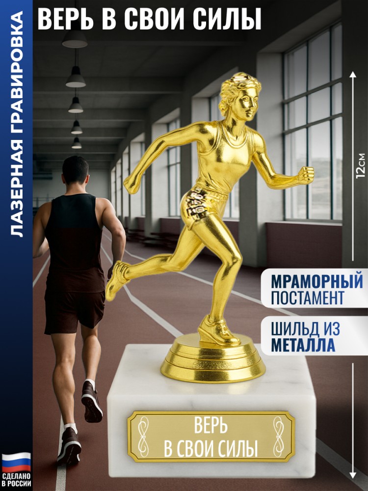 Фигура легкоатлетки актуальна для секций по спорту, школьных мероприятий и клубных турниров. Трофей подойдёт для награждения за призовые места, личные рекорды и участие в забегах на различные дистанции.