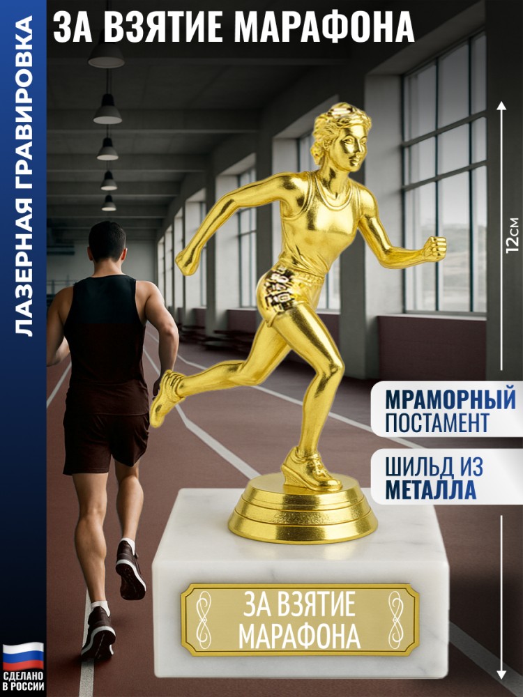 Фигура легкоатлетки актуальна для секций по спорту, школьных мероприятий и клубных турниров. Трофей подойдёт для награждения за призовые места, личные рекорды и участие в забегах на различные дистанции.