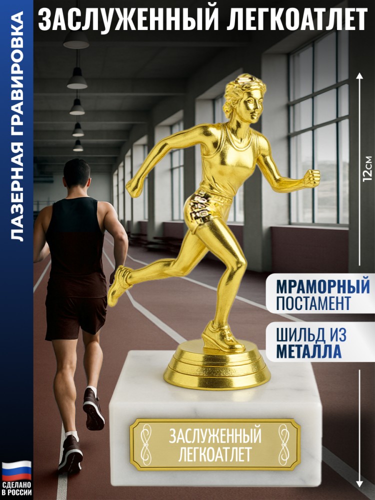 Фигура легкоатлетки актуальна для секций по спорту, школьных мероприятий и клубных турниров. Трофей подойдёт для награждения за призовые места, личные рекорды и участие в забегах на различные дистанции.
