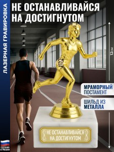 Наградная статуэтка с фигуркой бегуньи предназначена для спортивных соревнований по лёгкой атлетике. Используется как приз в индивидуальных дисциплинах: спринте, марафоне, беге с препятствиями.