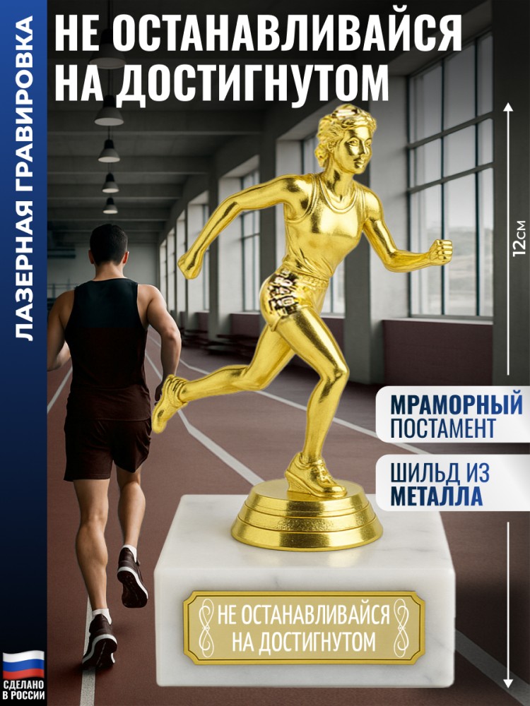 Фигура легкоатлетки актуальна для секций по спорту, школьных мероприятий и клубных турниров. Трофей подойдёт для награждения за призовые места, личные рекорды и участие в забегах на различные дистанции.