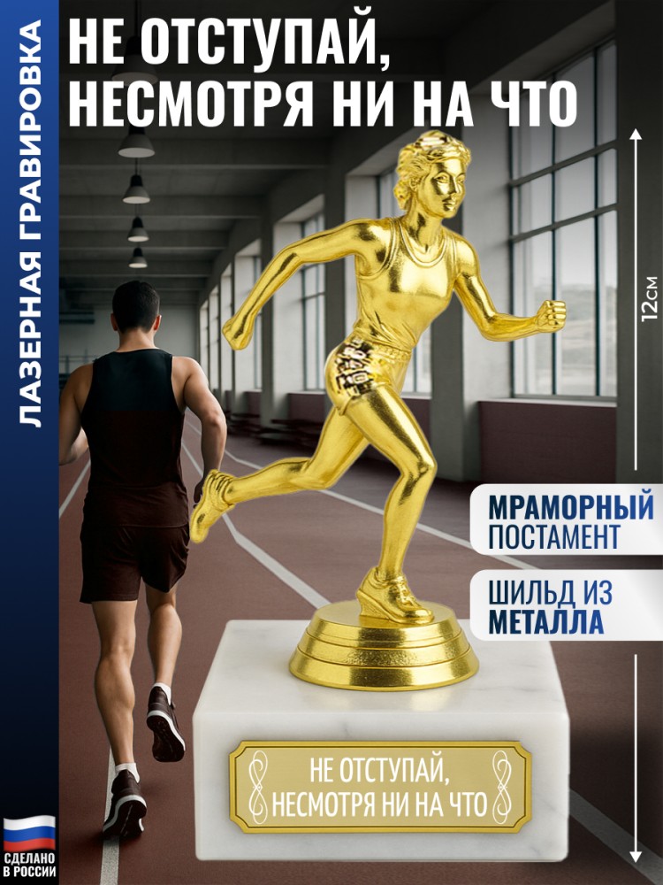 Фигура легкоатлетки актуальна для секций по спорту, школьных мероприятий и клубных турниров. Трофей подойдёт для награждения за призовые места, личные рекорды и участие в забегах на различные дистанции.