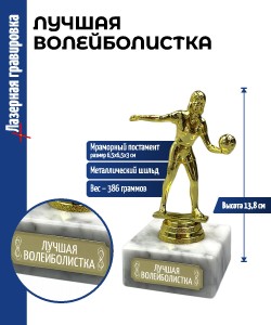Статуэтка Волейболистка "ЛУЧШАЯ ВОЛЕЙБОЛИСТКА" на мраморном постаменте (13,8 см) - описание товара