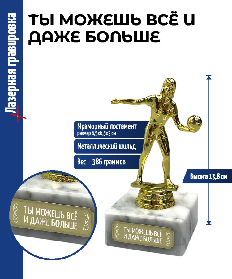 Статуэтка Волейболистка "ТЫ МОЖЕШЬ ВСЁ И ДАЖЕ БОЛЬШЕ" на мраморном постаменте (13,8 см) - описание товара