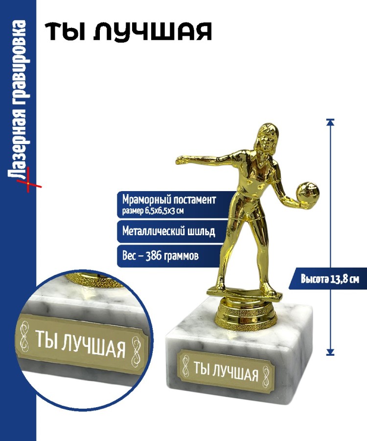 Статуэтка Волейболистка "ТЫ ЛУЧШАЯ" на мраморном постаменте (13,8 см) - описание товара