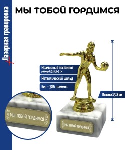 Статуэтка Волейболистка "МЫ ТОБОЙ ГОРДИМСЯ" на мраморном постаменте (13,8 см) - описание товара