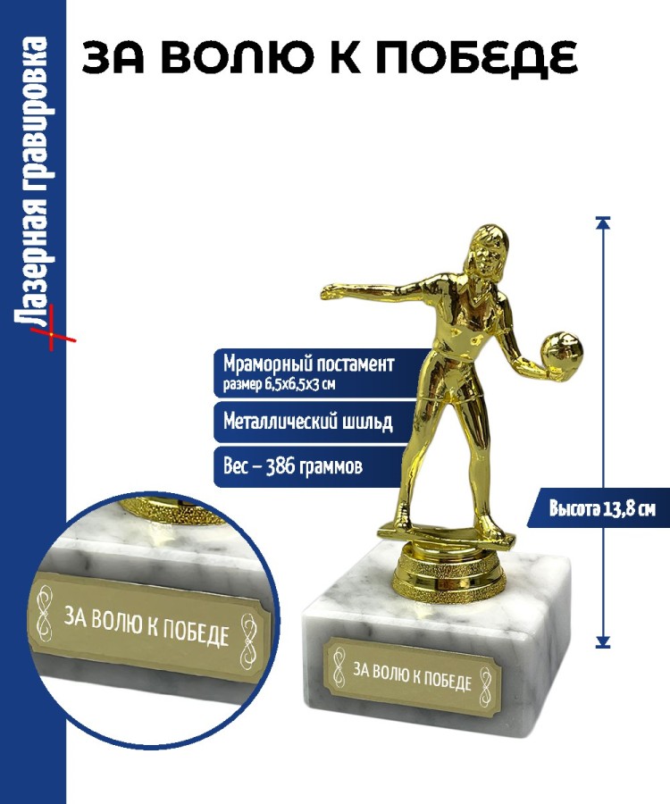 Статуэтка Волейболистка "ЗА ВОЛЮ К ПОБЕДЕ" на мраморном постаменте (13,8 см) - описание товара