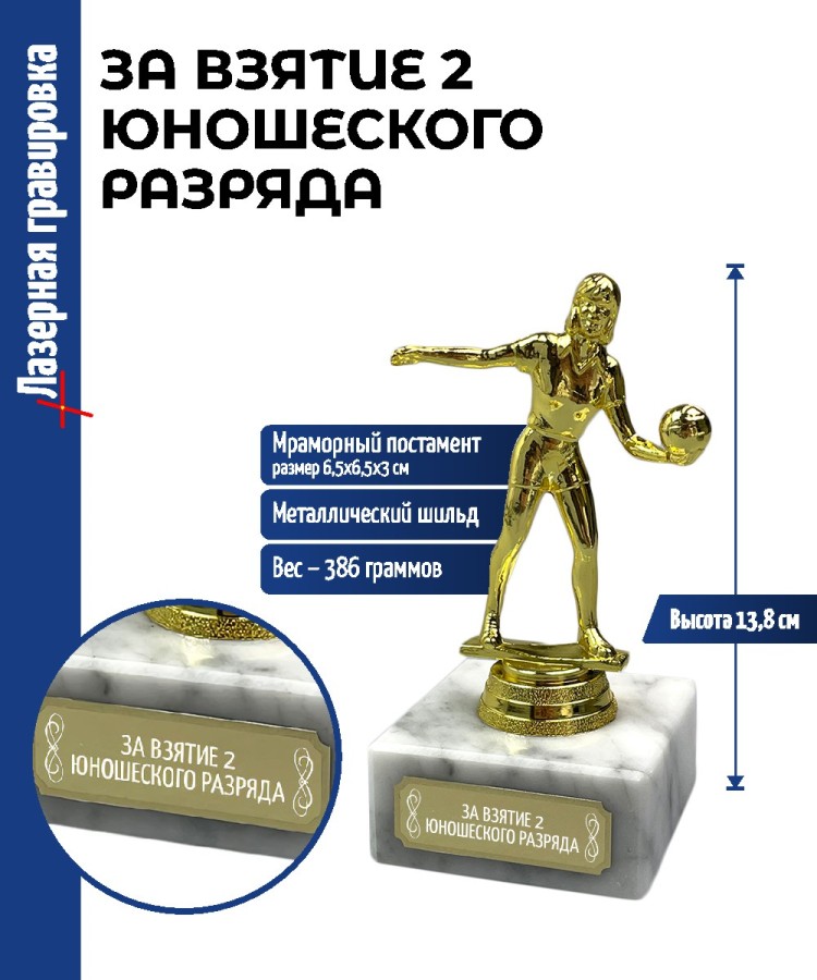 Статуэтка Волейболистка "ЗА ВЗЯТИЕ 2 ЮНОШЕСКОГО РАЗРЯДА" на мраморном постаменте (13,8 см) - описание товара