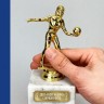 Наградная статуэтка с фигурой волейболиста на подставке. Подходит для размещения в интерьерах спортивных залов и коллекциях призовых трофеев.