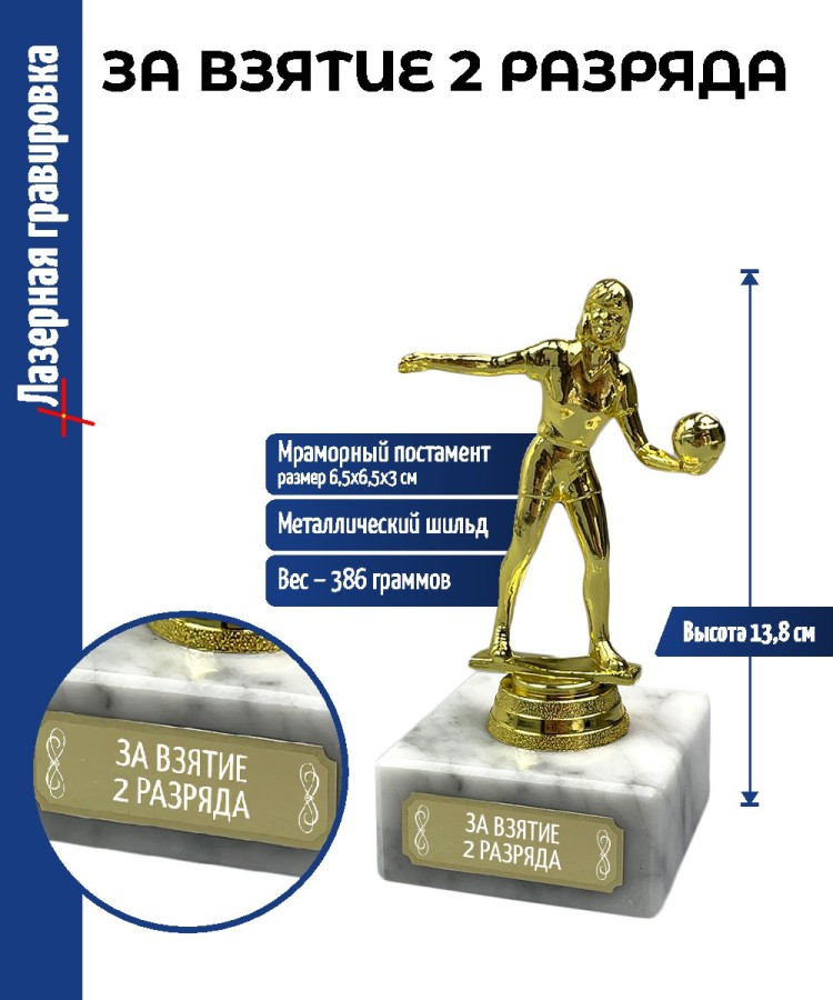Статуэтка Волейболистка "ЗА ВЗЯТИЕ 2 РАЗРЯДА" на мраморном постаменте (13,8 см) - описание товара
