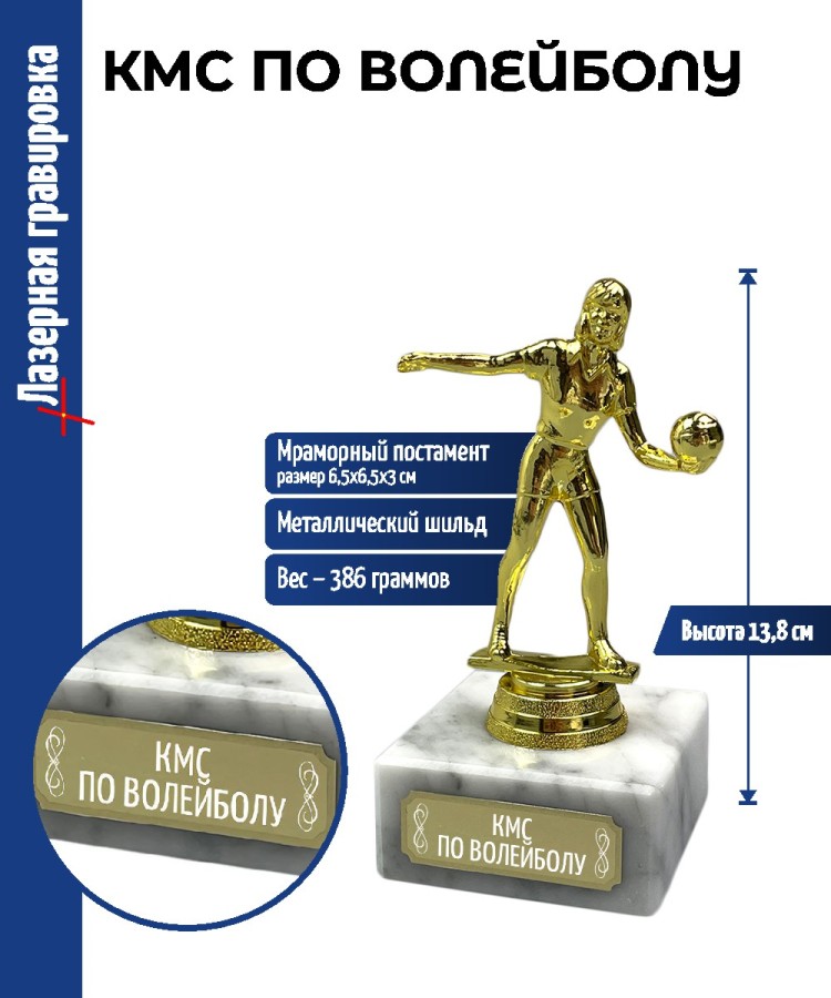 Статуэтка Волейболистка "КМС ПО ВОЛЕЙБОЛУ" на мраморном постаменте (13,8 см) - описание товара
