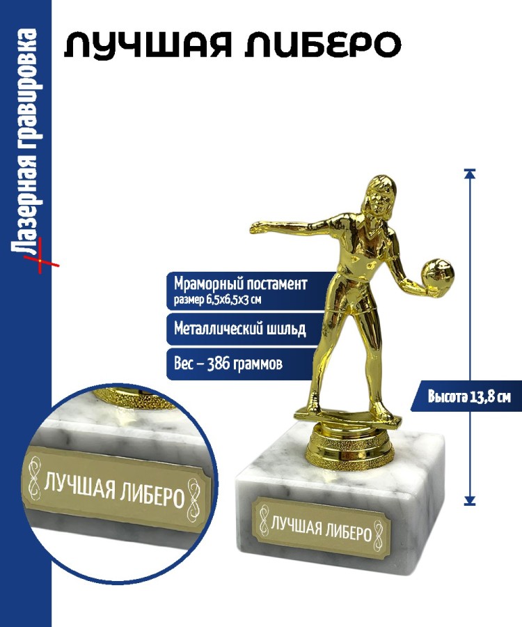 Статуэтка Волейболистка "ЛУЧШАЯ ЛИБЕРО" на мраморном постаменте (13,8 см) - описание товара