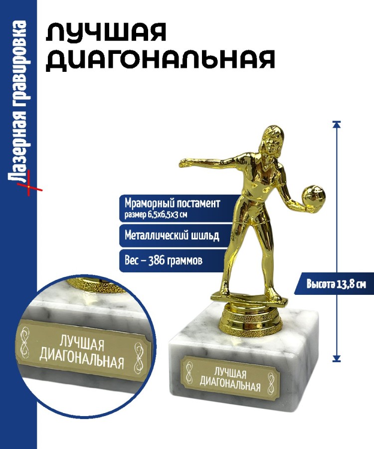 Статуэтка Волейболистка "ЛУЧШАЯ ДИАГОНАЛЬНАЯ" на мраморном постаменте (13,8 см) - описание товара
