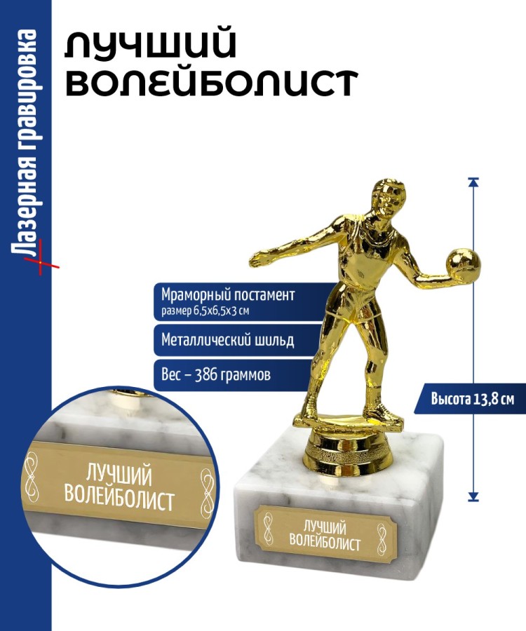 Статуэтка Волейболист "ЛУЧШИЙ ВОЛЕЙБОЛИСТ" на мраморном постаменте (13,8 см) - описание товара