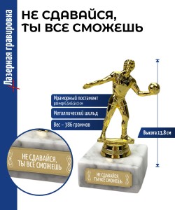 Статуэтка Волейболист "НЕ СДАВАЙСЯ, ТЫ ВСЕ СМОЖЕШЬ" на мраморном постаменте (13,8 см) - описание товара