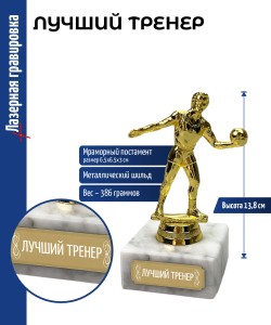 Статуэтка Волейболист "ЛУЧШИЙ ТРЕНЕР" на мраморном постаменте (13,8 см)