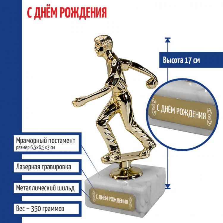 Статуэтка Боулинг "С днём рождения" на мраморном постаменте (17 см) - описание товара
