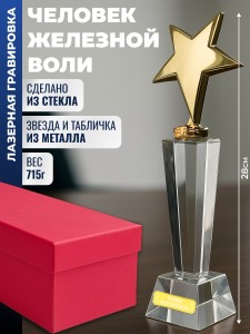 Сувенирная статуэтка "Наградная стела Золотая звезда" станет отличной памятной наградой за заслуги или победы