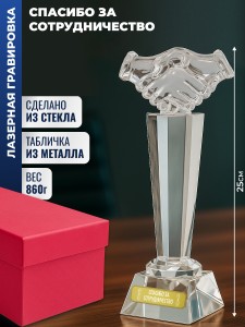 Сувенирная статуэтка "Наградная стела Рукопожатие" станет отличной памятной наградой за заслуги или победы.