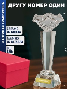 Сувенирная статуэтка "Наградная стела Рукопожатие" станет отличной памятной наградой за заслуги или победы.