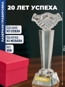 Наградная стела рукопожатие "20 лет успеха" - описание товара