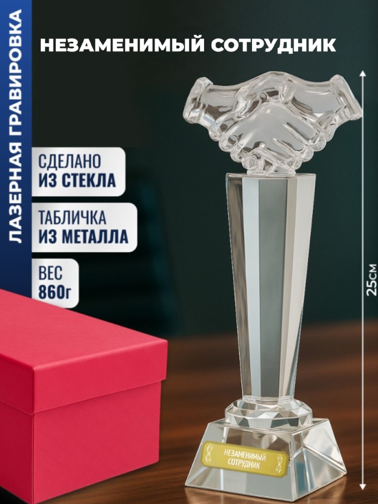Сувенирная статуэтка "Наградная стела Рукопожатие" станет отличной памятной наградой за заслуги или победы.