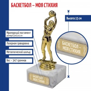 Статуэтка Баскетболистка "Баскетбол - моя стихия" на мраморном постаменте (15 см) - описание товара
