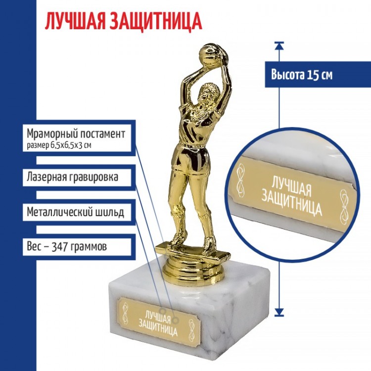 Статуэтка Баскетболистка "Лучшая защитница" на мраморном постаменте (15 см) - описание товара