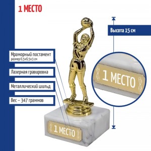 Наградной кубок с баскетболисткой используется для награждения призёров на массовых мероприятиях и праздниках или за участие в соревнованиях.
