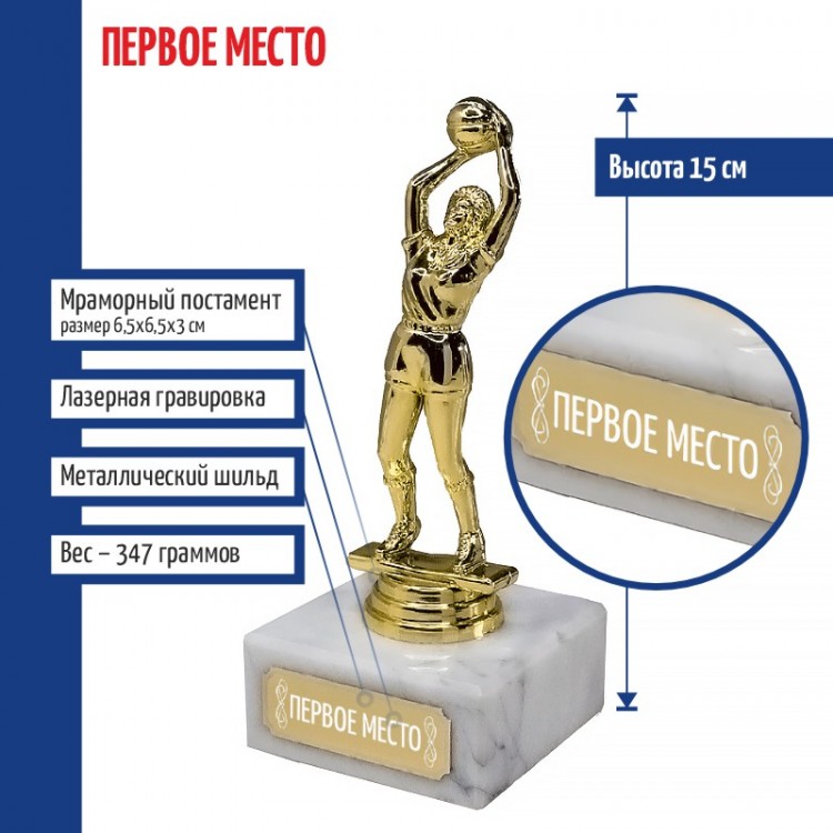 Наградной кубок с баскетболисткой используется для награждения призёров на массовых мероприятиях и праздниках или за участие в соревнованиях.