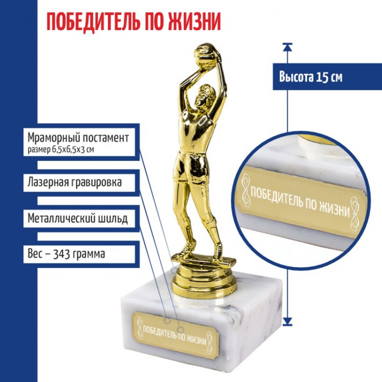 Статуэтка Баскетболист "Победитель по жизни" на мраморном постаменте (15 см) - описание товара