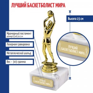 Статуэтка Баскетболист "Лучший баскетболист мира" на мраморном постаменте (15 см) - описание товара