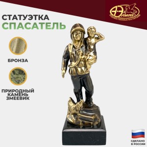 Материал: Бронза (фигура спасателя), Змеевик (постамент).