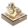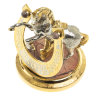 На части изделия нанесена позолота посредством технологии электролиза (гальваническое золотое покрытие). Толщина слоя составляет 5 мкм. Согласно действующему законодательству изделия со слоем позолоты на недрагоценном металле не подлежат опробованию (проба не ставится), а сами изделия не считаются ювелирными. По этой причине никаких сертификатов или иных сопроводительных документов для продажи или перевозки такого товара не требуется.